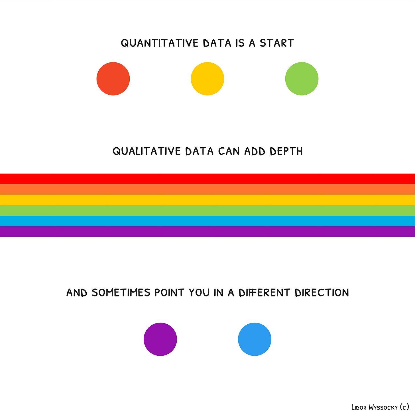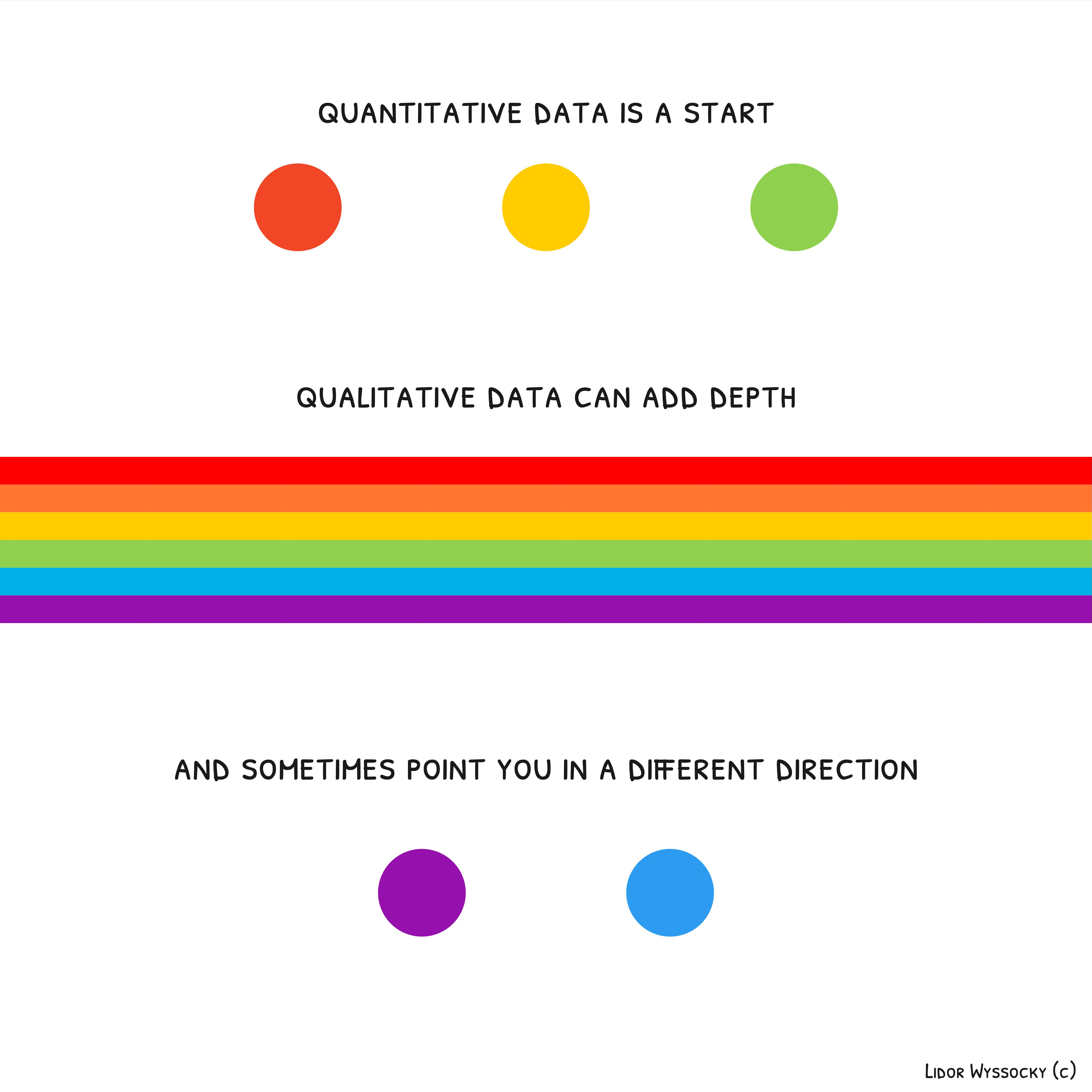 Qualitative data is not free of challenges. By definition, it can be subjective, and scaling its collection and analysis is not trivial. How much to invest in collecting qualitative data and how to take into account its inherent flaws are important aspects you’d have to experiment with. But the fact that this kind of data introduces its own challenges doesn’t dismiss its value.