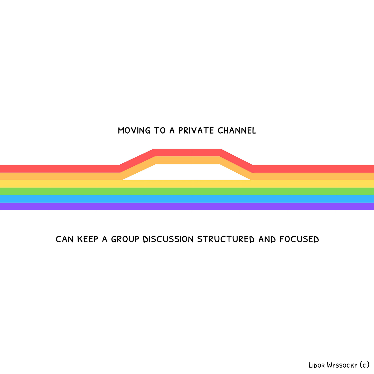We have to intentionally choose the people we interact with based on the content of the message and what we aim to achieve. We can adjust the participant list as needed throughout the communication flow. We can create side discussions as long as we remember to reconvene. Sometimes, this is the only way to optimize our interactions and make them effective.